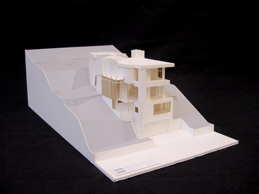 Buckingham Residence is a new residential project located on a hillside in the Berkeley hills. The design called for a multi-level home that works with the slope of the hill. Precise incisions on the edges of the house bring abundant natural light into the interior spaces. High, vaulted corners are shaded with horizontal louvers to create dappled lighting at various areas in the house.