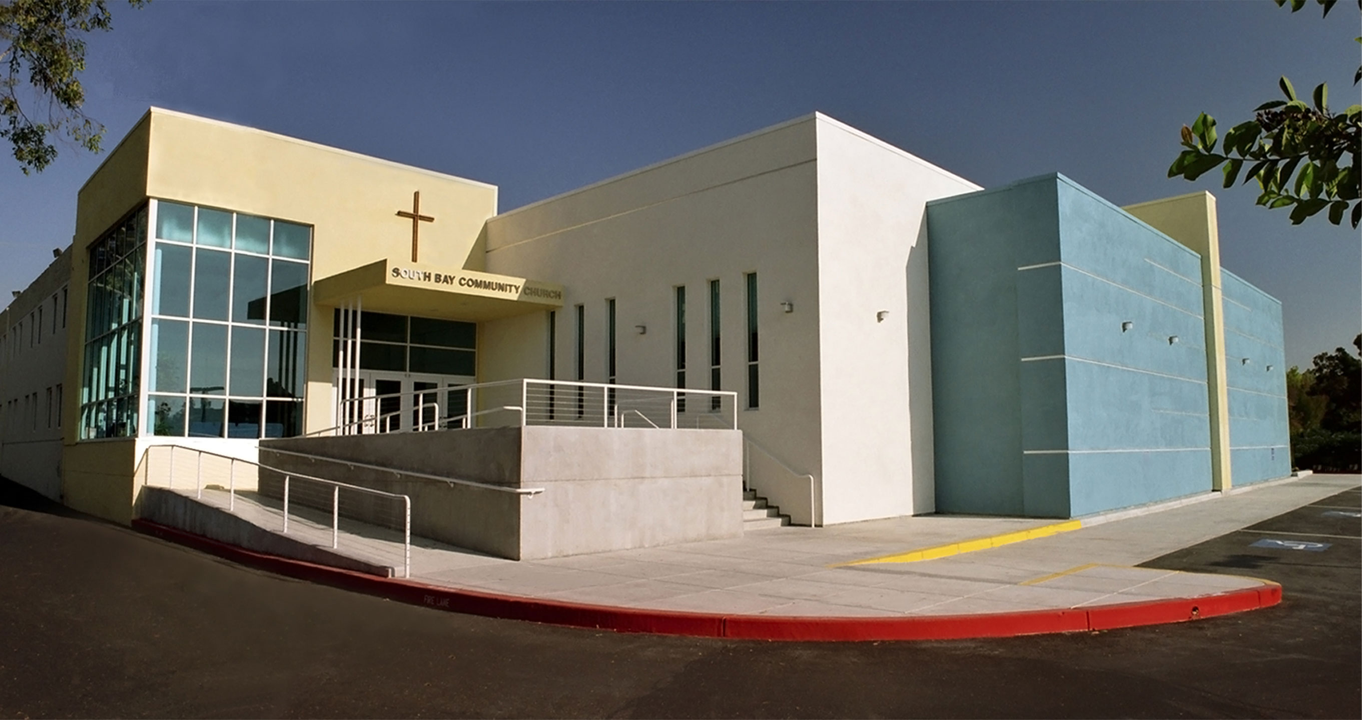 South Bay Community Church incorporates two separate assembly spaces, the main sanctuary hall with seating for approximately 800 parishioners and a secondary gathering space for 550 parishioners. The project involved a major addition and renovations to an existing industrial/commercial building.